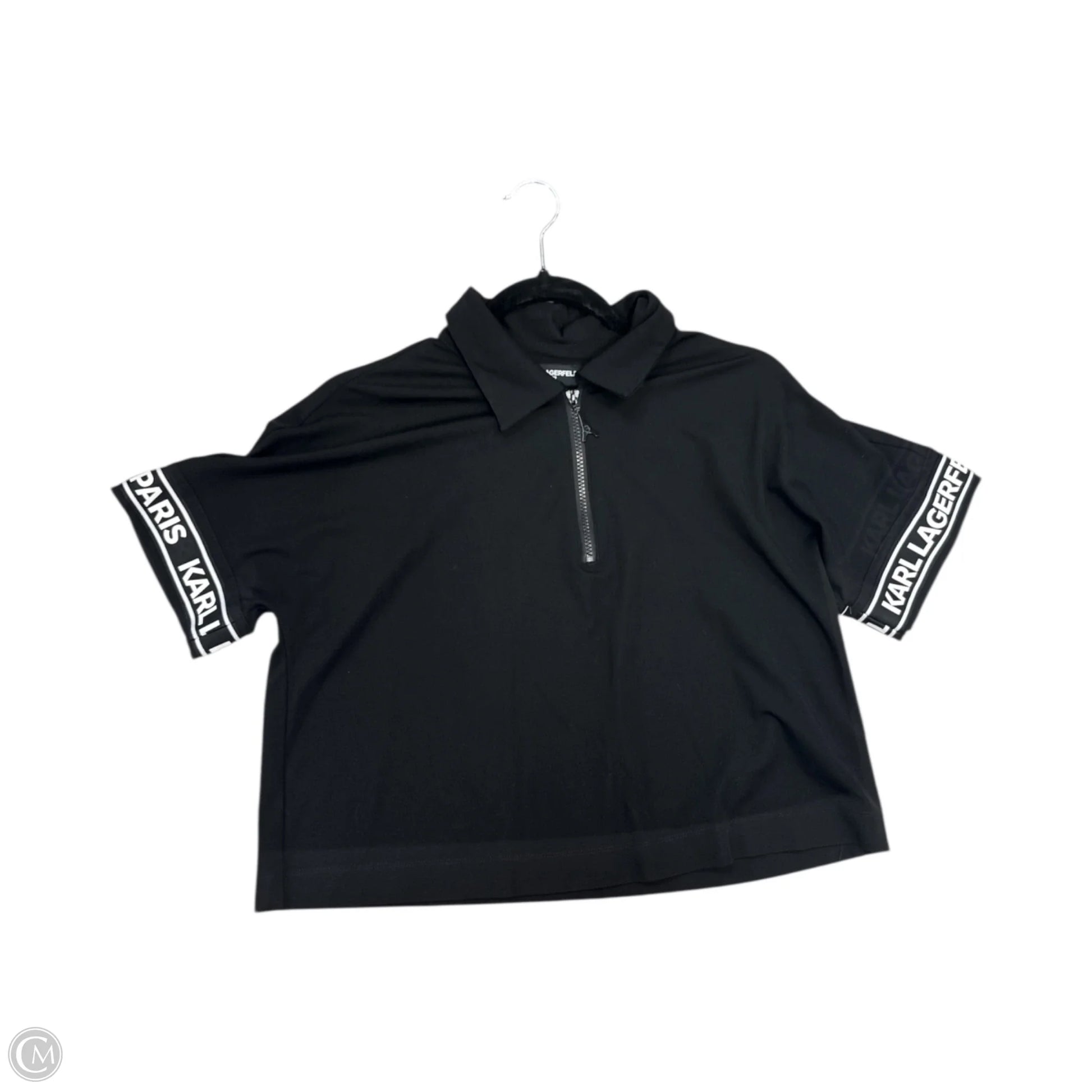 Top Short Sleeve Designer By Karl Lagerfeld In Black, Size: M